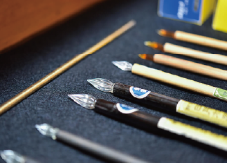 風鈴職人によって考案され、一度インクに浸すとハガキ1枚程度書けるのが特徴。試し書きできるので、滑らかな書き味をぜひ体感しよう。