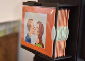 ベルリン生まれのポストカードは、つまみを引っ張ると絵が変わるしかけ付き。思わず何枚も手に取りたくなる。
