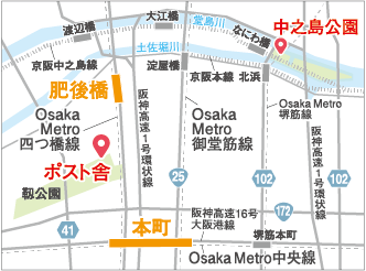 Osaka Metro 四つ橋線「肥後橋駅」下車、7番出口より徒歩約5分