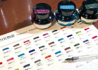 「旧居留地セピア」など神戸をイメージした約90色のインクがそろう。椅子に座ってガラスペンで試し書きができ、自分好みの色をゆっくり探せる。