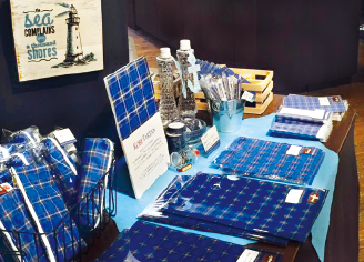 「神戸タータン」柄のグッズや神戸のイラストが描かれたボールペン、絵葉書などがそろう。おしゃれで可愛い商品はインテリアやギフトにも。