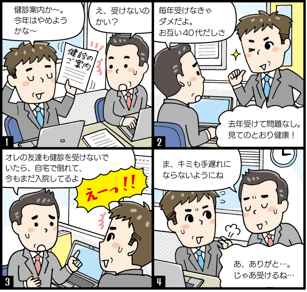 自覚症状が現れたころには、生活習慣病は進行しています。特定健診で病気を早期に発見し、早期に治療を開始しましょう。